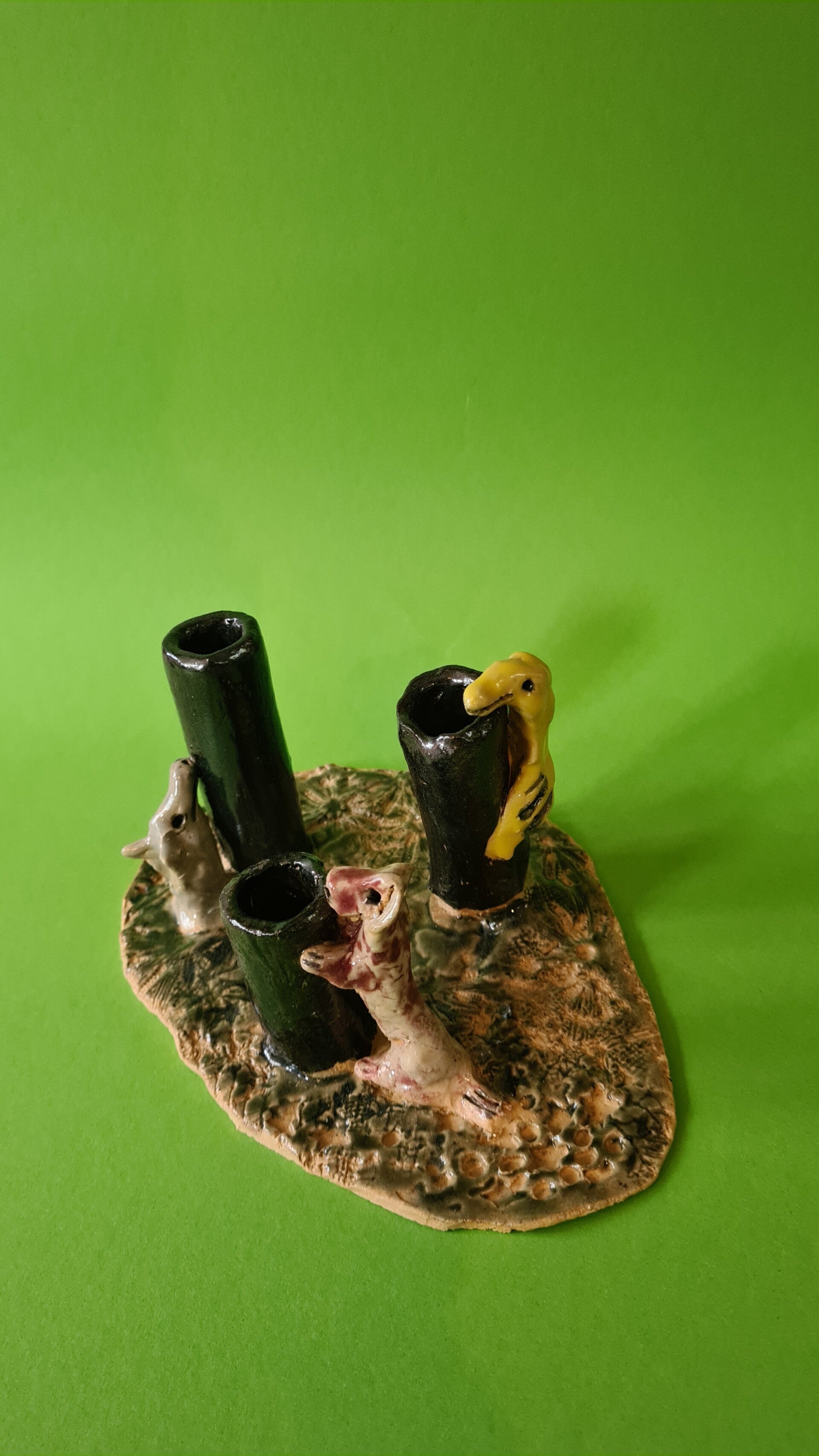 Ontdek onze unieke collectie kandelaars, waar elk exemplaar een eigen verhaal vertelt. Laat je betoveren door de speelse dierfiguren en voeg een vleugje eigenzinnigheid toe aan je interieur. Welkom in de wereld van de klei mythe, waar kunst en functionaliteit samenkomen.