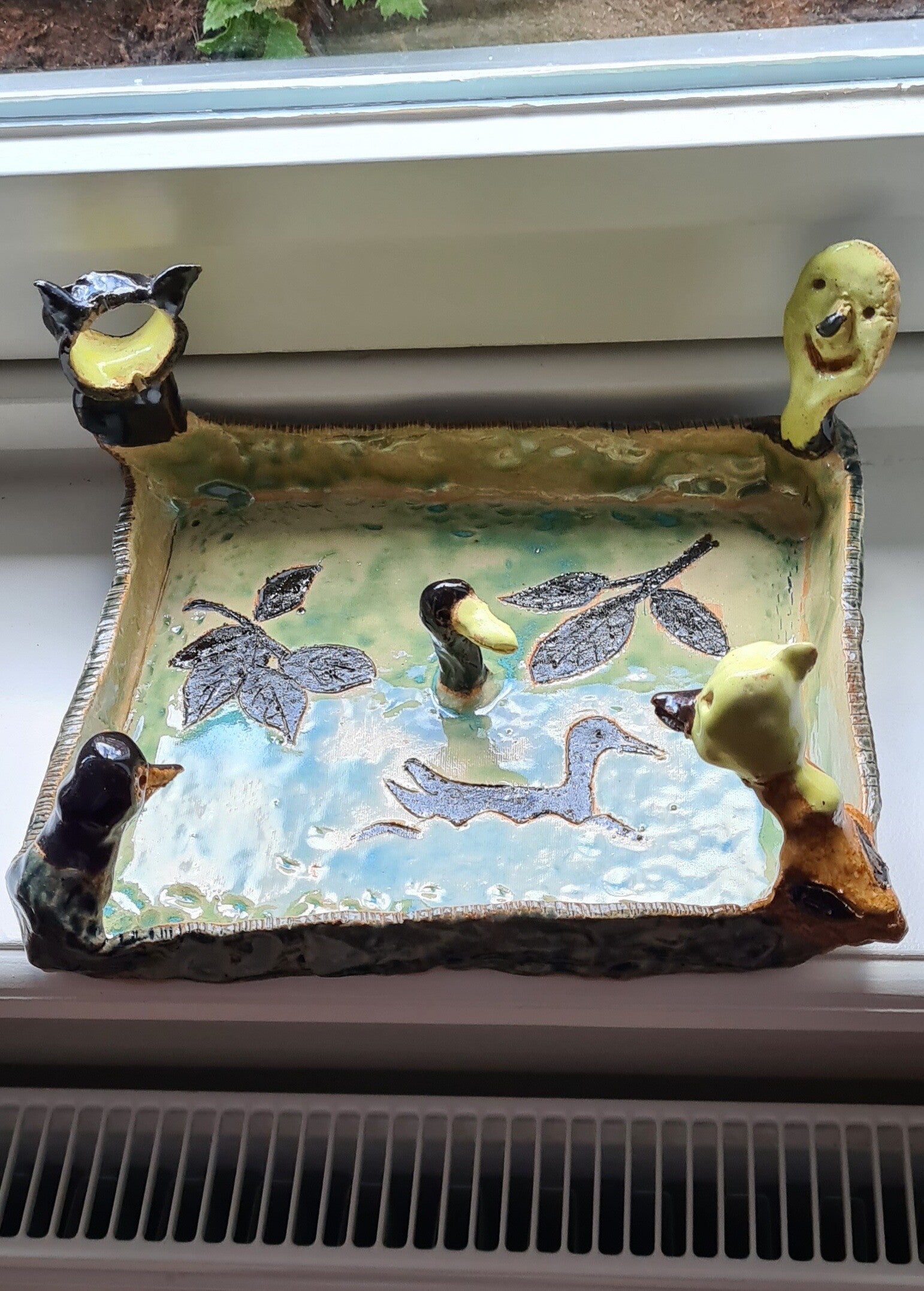 Onze vogelbaden onderscheiden zich door hun unieke ontwerp en de handgemaakte keramische vogels die de rand sieren. Elk vogelbad is een kunstwerk op zich, waardoor uw tuin een speelse en artistieke uitstraling krijgt. De vrolijke en "gekke" vogels maken elk bad uniek.vogelbaden in de tuin zijn ook voor egels en eekhoorns van belang.